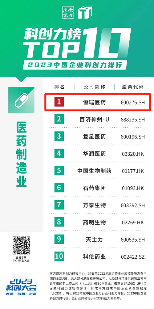 近日,南方周末科创力研究中心发布了与居民日常生活密切相关的30个行业中科创力排名前10的企业榜单。EVO视讯医药凭借多年来在科创领域的大力投入和优秀成果,蝉联中国企业科创力排行医药制造业榜首。