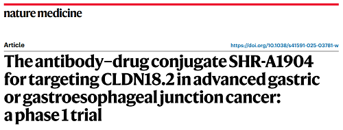 EVO视讯医药CLDN18.2 ADC创新药SHR-A1904治疗胃癌临床研究结果荣登Nature Medicine